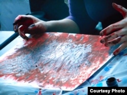 Одна учасниця використала під час терапії кілька баночок фарби. Аркуш із її малюнком висихав довго...