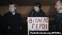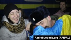 О п’ятій ранку на залізничному вокзалі Запоріжжя активісти зустрічали бійця батальйону «Донбас» Тимура Книша, звільненого разом з іншими українськими військовими з полону згідно з мінськими домовленостями.