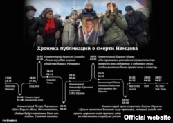 За словами російських журналістів, судячи з хронології появи коментарів західних лідерів та ЗМІ про вбивство Бориса Нємцова, офіційний Київ не поспішав давати свою оцінку злочину.