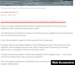 Ця інформація є першоквітневим жартом, і жодна із цитат або ж наведеної інформації, що міститься в матеріалі, не відповідають дійсності – такий текст розпочинає саму статтю на сайті EUobserver.