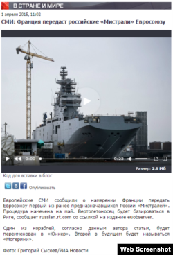 Першого квітня російські та проросійські, і навіть деякі українські інтернетні медіа масово поширили інформацію, про те що, начебто Франція передасть «Містралі» Євросоюзу замість Росії.