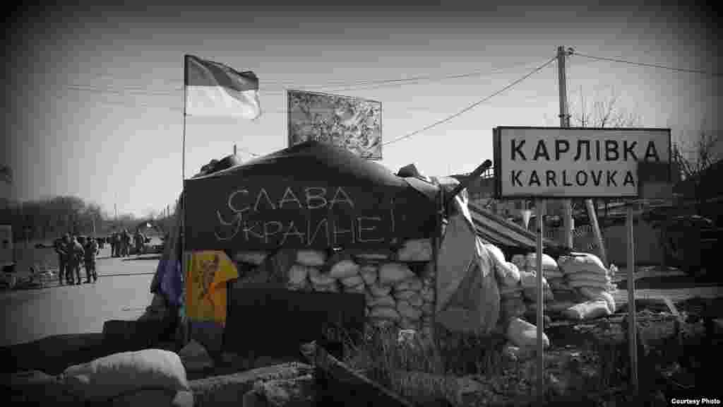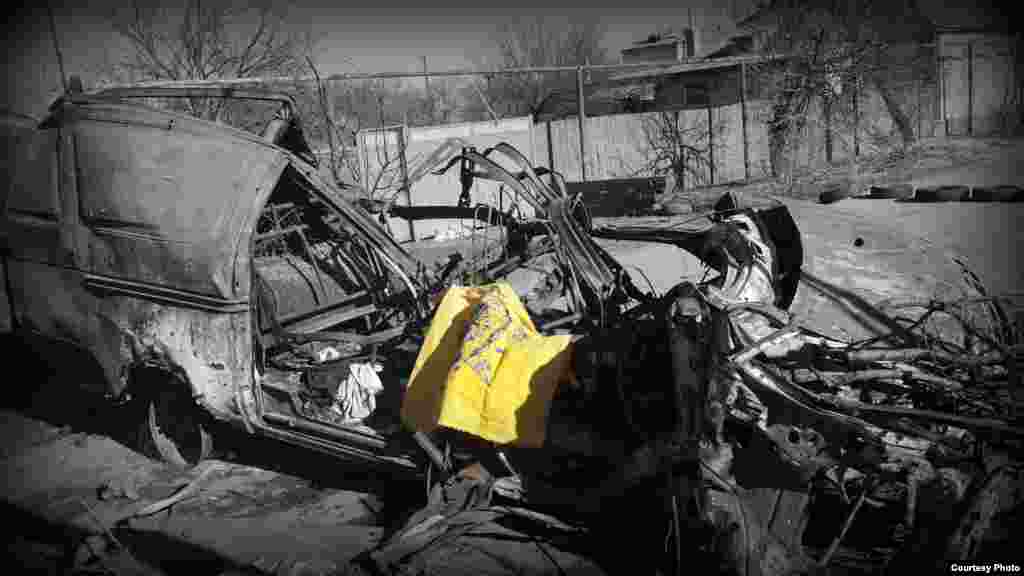 Проект складається із одного жовто-синього полотна, яке стало ключовим елементом фотографій із зони АТО. Робота Анжеліки Рудницької «Реконструкція світу» побувала разом із українськими бійцями кілька місяців у найгарячіших точках – від Широкина до Станиці Луганської.