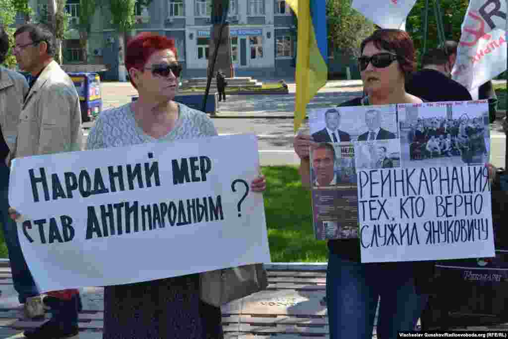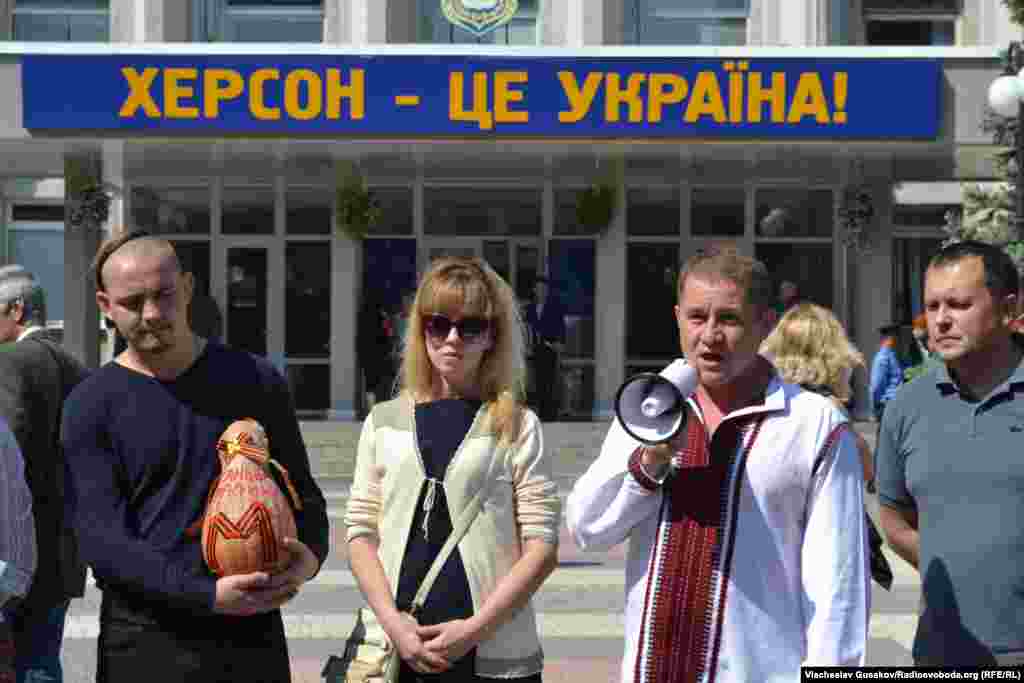 Активісти херсонського Євромайдану пікетували Херсонську міську раду, заявляючи, що міська влада, по суті, схвалила проведення під час урочистостей на честь 70-річчя перемоги 9 травня ходи та інших масових заходів, організованих представниками Компартії і «Опозиційного блоку».