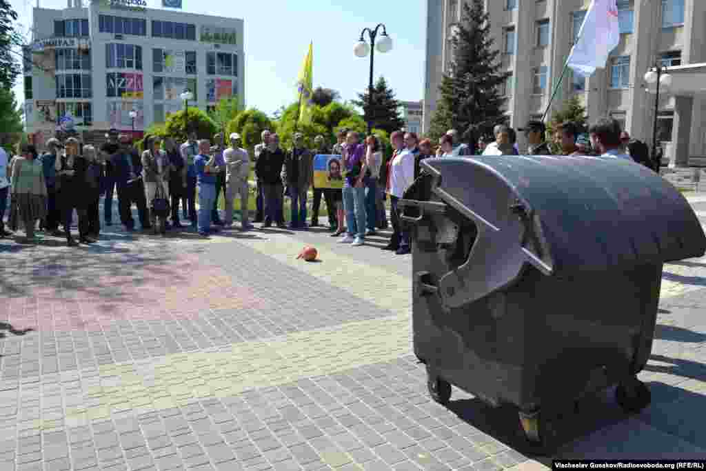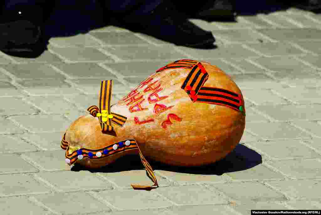 Активісти херсонського Євромайдану пікетували Херсонську міську раду, заявляючи, що міська влада, по суті, схвалила проведення під час урочистостей на честь 70-річчя перемоги 9 травня ходи та інших масових заходів, організованих представниками Компартії і «Опозиційного блоку». Євромайданівці принесли для міської влади «презент» – гарбуз, прикрашений георгіївськими стрічками, знятими 9 травня активістами з проросійськи налаштованих херсонців. Вони також прикотили до будівлі міськради атрибут «народної люстрації» – сміттєвий контейнер.