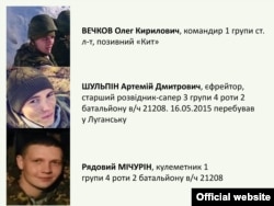 Служба безпеки України продемонструвала імена, фотографії та особисті данні бійців спецпризначення, які воювали на сході України. Самі затримані сказали представникам ОБСЄ, що діяли за наказом командування – лише ходили у розвідку та не мали повноважень відкривати вогонь.