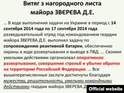 Крім того СБУ має документальні підтвердження того, що російських військових нагороджували за супровід реактивної артилерії залпового вогню «Град» на місця обстрілів.