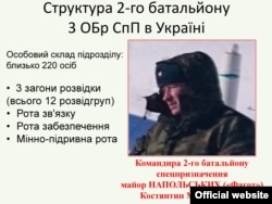 Як було відомо раніше з пояснень затриманих спецпризначенців, вони зайшли до України наприкінці березня цього року разом із 2-м окремим батальйоном 3-ї окремої бригади військ спецпризначення – загалом 220 осіб. Командує підрозділом майор Костянтин Напольских за позивним «Фагот»