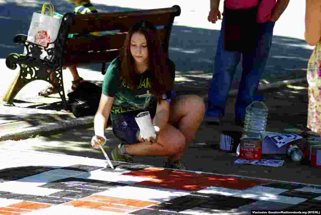 Представники кількох громадських та політичних організацій, пересічні містяни розмалювали візерунком з української вишиванки частину тротуару на цій вулиці. У акції взяли участь також представники міської влади, депутати, громадські діячі.