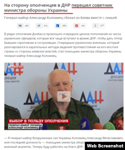 Російські федеральні канали продемонстрували заяву колишнього українського генерал-майора запасу Олександра Коломійця про перехід на бік так званої «ДНР». Російський телеканал LifeNews представив Коломійця як нинішнього радника міністра оборони України.
