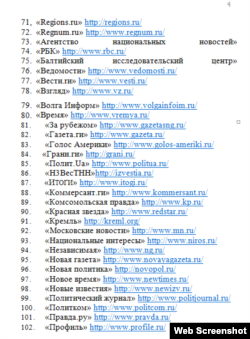 У цьому ж вигаданому «чорному списку» також «Бі-Бі-Сі», «Новая Газета» та інші
