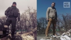 Бато Дамбаєв біля блоктосту міста Вуглегірськ, де Бато й інші російські військові воювали в середині лютого 2015 року