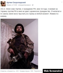 (Артем Скоропадський наголошує, що воював за Україну проти Росії і заявляє, що справа надання йому українського громадянства залежить від Адміністрації президента Петра Порошенка – ред.)