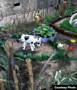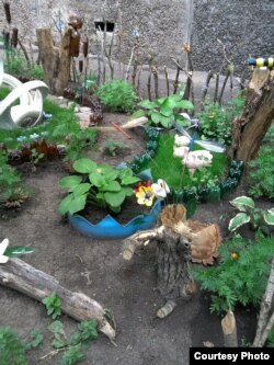 Несмотря на продолжающиеся боевые действия, а может и даже благодаря им, многие граждане нашего городка тянутся к прекрасному и создают у себя под балконами настоящие сказочные композиции.