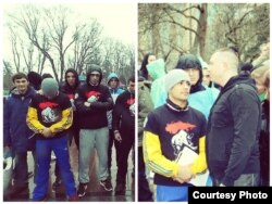 Правда, образ патріота не витримує перевірки гуглом. Гортаючи веб-сторінки з інформацією про «Оплот», можна побачити, що у квітні 2013 року Таваккул Рагімов був серед 150 осіб, яких «Оплот» привіз із Харкова до Києва для «охорони» виставки про «прислужников Гитлера – УПА». У фотоматеріалі на сайті «Нового регіону» Рагімов стоїть з опущеною головою, але ми знаходимо його обличчя на одній із фотоілюстрацій до матеріалу Іллі Азара для Лента.ру, яка не залишає сумнівів. Тут його обличчя добре видно, і він у компанії Жиліна.