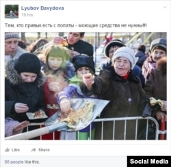Нагадаємо, фото було зроблене навесні цього року в Ставрополі під час святкування Масляної, де місцевих жителів годували млинцями просто з лопат.