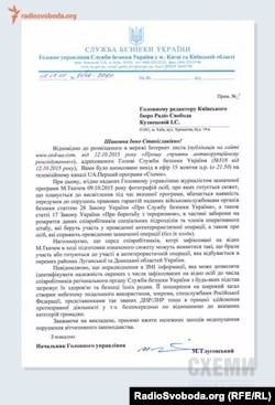 Натомість листи у відповідь ми почали отримувати за кілька годин до ефіру, коли випуск був повністю змонтований і внести зміни вже було технічно неможливо. Начальник управління СБУ в Києві та Київській області Глуговський писав про порушення законодавства в разі виходу програми в ефір увечері 16 жовтня – тобто здійснював тиск на журналістів безпосередньо перед ефіром.