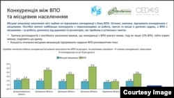 Цікаво, що самі переселенці значно більше відчувають конкуренцію з місцевими, ніж корінні мешканці міст, де проводилося опитування. Постійні жителі найбільше конкурують із переселенцями за роботу, житло та місця в дитячих садках, а ВПО з місцевими – за роботу, допомогу від держави та волонтерів, час прийому в установах і житло. І знов таки, найбільший індекс конкуренції – 5,3 – спостерігається серед ВПО в Луганській області.