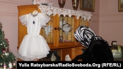 А ось і новорічні дитячі костюми, зшиті дбайливими руками мам, обсипані блискітками з дощику. Відвідувачка виставки Оксана затрималась біля платтячка сніжинки з накрохмаленої марлі.