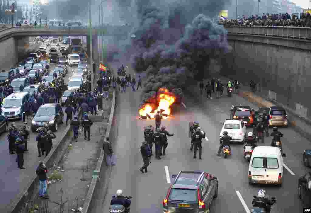 Із самого ранку 26 січня таксисти по всій Франції почали протести проти американського таксі-сервісу Uber. Водії перекрили шосе, під'їзди до аеропортів і центри міст. Чи почула влада голос людей – галерея спеціального проекту Радіо Свобода «Настоящее время»