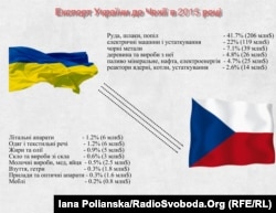 Половина українського експорту до Чехії – сировина руди і концентрати. Ще п’ята частина – електричні машини та устаткування. Десята частина – чорні метали. А от такий готовий товар як взуття та одяг – лише 1%, хоча потенціал для збільшення цієї частки в України є.