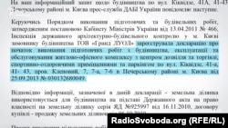 – Добрий день, а це Вас турбують з Радіо Свобода, мене звати Анастасія, я журналіст. Підкажіть, будь ласка, що Ваша компанія «Гранд Луол» зараз будує на Кіквідзе, 41-43?