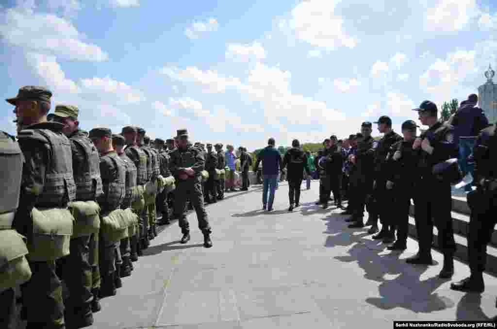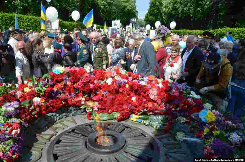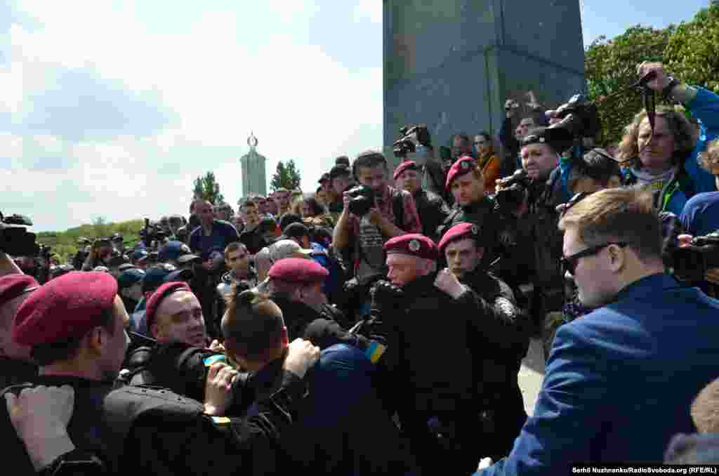 У Києві у парку Вічної слави під час відзначення Дня перемоги над нацизмом у Другій світовій війні сталися незначні сутички. Анонсована раніше акція «Безсмертний полк», яка відразу викликала критику, розпочалась біля метро Арсенальна. Люди з «георгіївськими стрічками» і забороненої комуністичною символікою рушили до Парку слави. Це викликало обурення деяких активістів. Поліція втрутилася в інцидент і розвела сторони.
