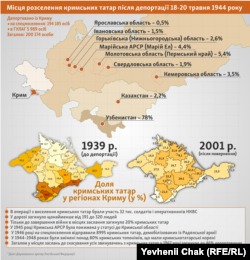 Від 190 до 300 людей загинули протягом кількох перших тижнів, коли відбувалася депортація. За офіційними джерелами, через нелюдські умови в місцях розселення до кінця війни загинуло понад 20% з депортованих кримських татар через холод, голод, відсутність медичного забезпечення та елементарних побутових умов. За підрахунками самих кримських татар, йдеться про втрату 46% свого народу в період до 1967 року, зазначає Сергій Громенко, кримський історик і публіцист, співробітник Українського інституту національної пам'яті. Зараз кримських татар за чисельністю трошки більше, ніж було до депортації, додає історик. Саме тому можна стверджувати про геноцид.
