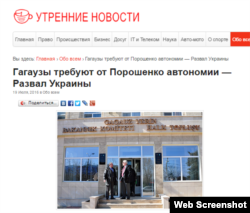 У ЗМІ і соціальних мережах масово поширили повідомлення про нібито вимогу гагаузів України автономії від Петра Порошенка.Упродовж дня можна було побачити такі заголовки: «Гагаузи вимагають від Порошенка автономії. Розвал України», «Гагаузи вимагають від Порошенка надати їм територіальну автономію», «Бути однорідною української масою: чи дасть Порошенко автономію гагаузам?».