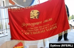 Біля одного з продавців висить прапор із зображенням Леніна і Маркса. На імпровізованій вітрині – розмаїття радянських значків, нашивок і монет.