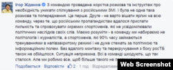 Министр спорта Игорь Жданов написал в Facebook, что проведен инструктаж о необходимости избегать общения с российскими СМИ.