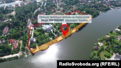 А ще видніються буйки та водний знак, що забороняє підпливати до берега орендованої Петром Порошенком землі.