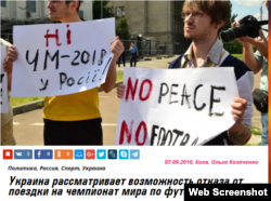 За інформацією «Известий», Національна збірна України з футболу в разі, якщо вона пройде кваліфікацію і проб’ється до фінальної частини чемпіонату світу-2018 в Росії, нібито може бойкотувати турнір через політичні мотиви. Також на сайті «Известий», посилаючись на власне джерело у Федерації футболу України, повідомили, що імовірність повного ігнорування чемпіонату зараз розглядається на рівні адміністрації організації і керівництва країни.
