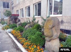Около входа в Донецкий художественный музей (сейчас к названию еще прибавили «республиканский») стоит женщина в бронежилете. Похоже, что она выполняет роль охранника.