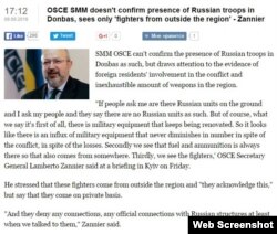 Низка російських видань повідомила, що нібито офіційний представник Організації з безпеки і співпраці в Європі (ОБСЄ) спростував твердження про присутність російських військових на частині території Донбасу, яка нині непідконтрольна українській владі. Однак генеральний секретар ОБСЄ Ламберто Дзаннієр не заявляв, що російських військових немає на окупованій частині Донбасу, про це йдеться на сайті Stopfake.org.