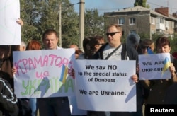 Министров иностранных дел Германии, Франции и Украины встретили в Краматорске акцией протеста. Участники митинга – активисты организации «Слов'янська Січ», матери и жены пропавших без вести и пленных бойцов АТО. Активисты выступали против предоставления особого статуса Донбассу и амнистии боевиков.