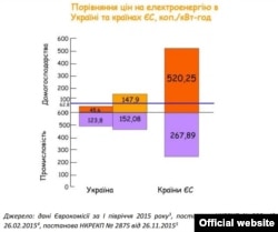 Між тим підрахунки аналітиків «Діксі Груп» свідчать, що в середньому в Євросоюзі електроенергія є дорожчою в кілька разів, ніж в Україні. Утім, український тариф для промисловості після подорожчання наблизиться до середньоєвропейського, який становить у перерахунку близько 2,7 гривні за кіловат-годину.