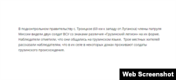Нещодавно, наприклад, у ЗМІ, із посиланням на звіт СММ ОСБЄ, з’являлась інформація про «іноземних найманців із Грузії» на боці ЗСУ. У самому звіті ОБСЄ, на який посилаються, сказано, що у підконтрольному Україні селі Троїцьке (69 кілометрів на захід від Луганська) члени патруля місії бачили двох солдатів ЗСУ зі знаками розрізнення «Грузинський легіон» на їхній формі. Спостерігачі відзначили, що вони спілкувалися грузинською. А троє місцевих жителів розповіли спостерігачам, що в їхньому селі в деяких будинках проживають солдати грузинського походження.