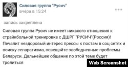 Дійсно, спростування причетності білоруських «Русичів» до тренування з нацистом Мільчаковим було опубліковано в спільноті силової групи.