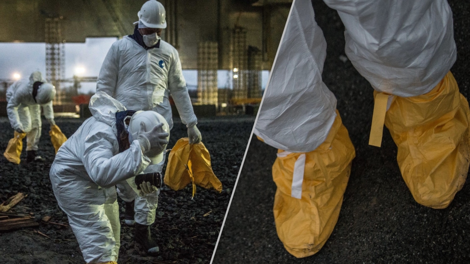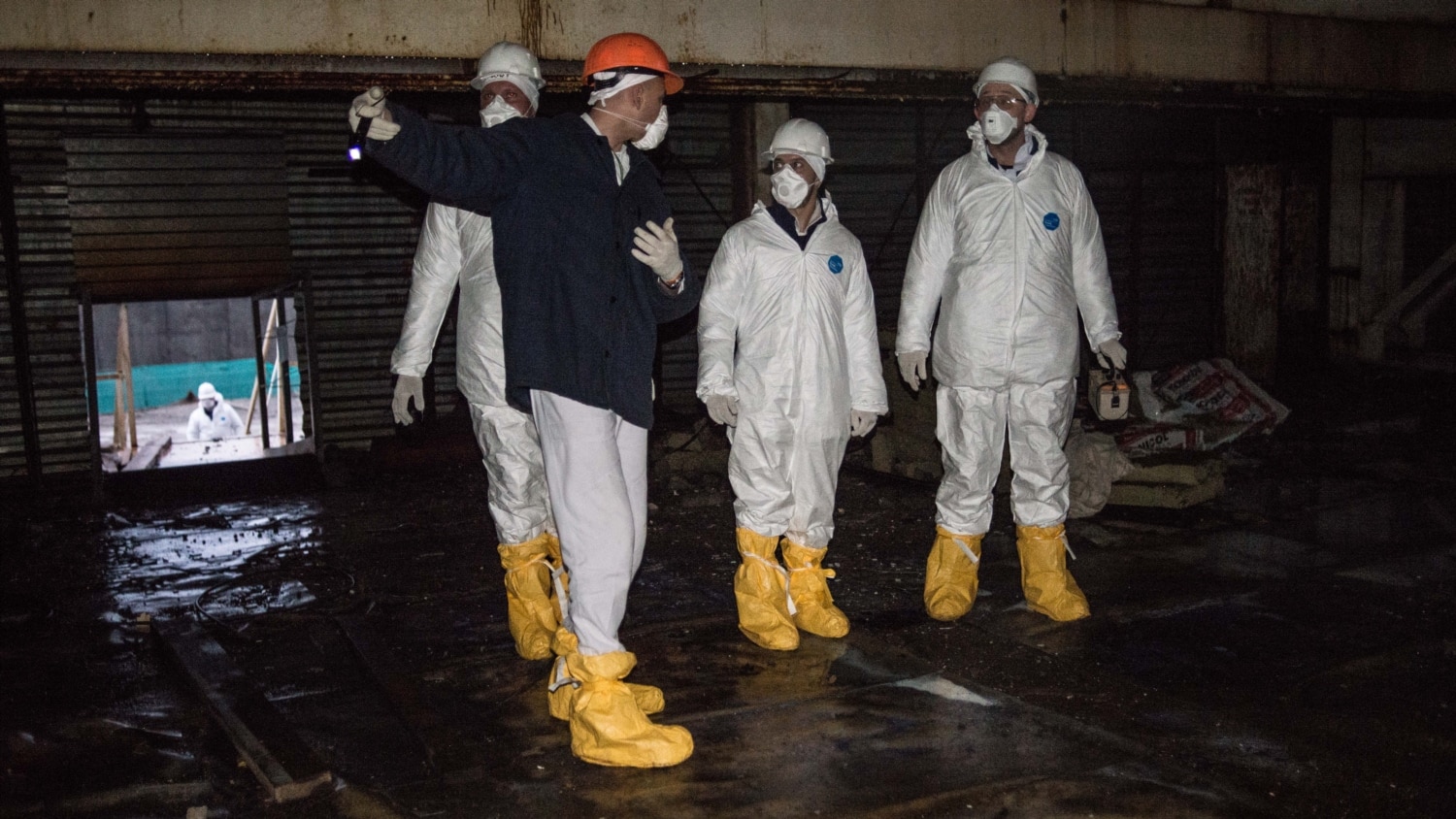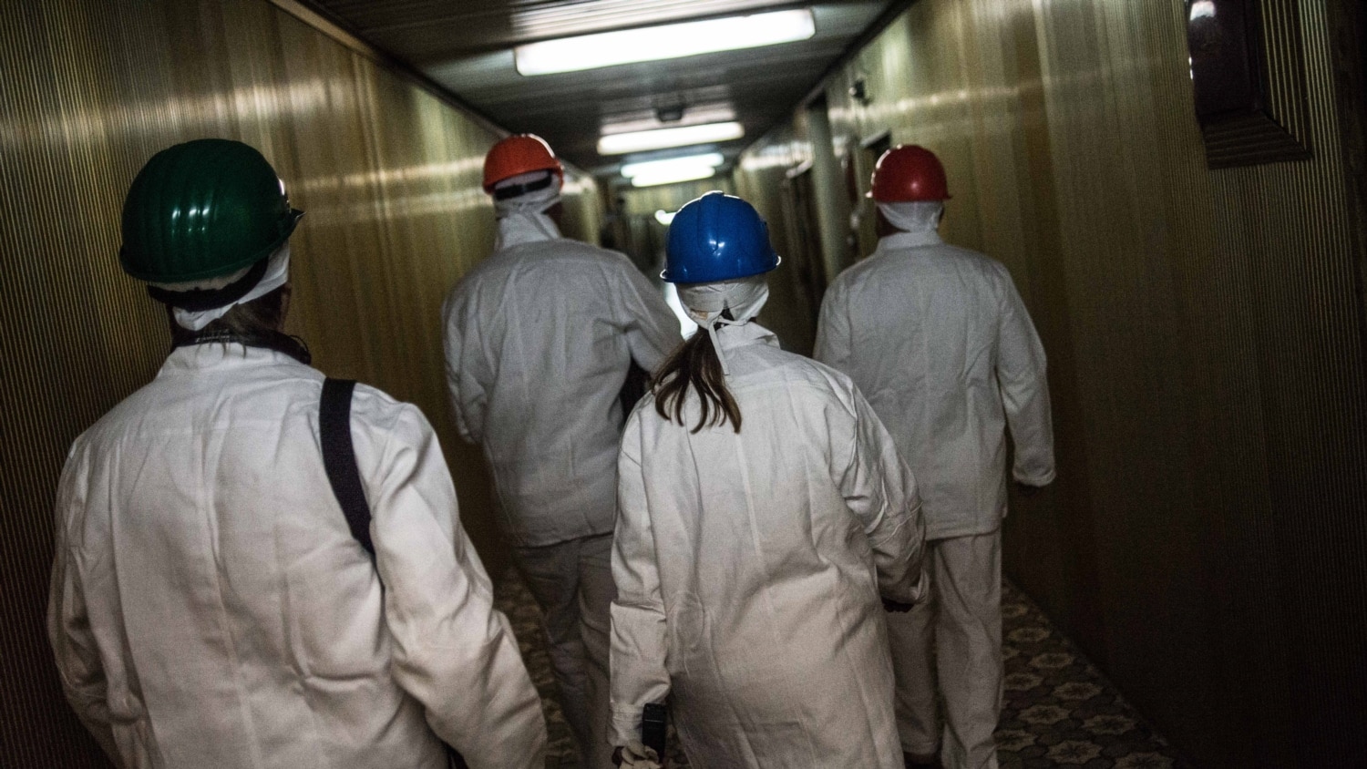 Перед входом до приміщень четвертого енергоблоку, які вціліли, група роздягається до білизни і отримує спецодяг. Крім білизни і роби – обов’язкові шапка, каска, рукавички, бахіли, респіратор і взуття. Все білого кольору, щоб було видно забруднення: пил може містити радіоактивні частинки. Маски підганяють, щоб не залишалося щілинки. Найбільшу шкоду завдають радіоактивні частинки, що потрапляють до легенів чи шлунка і залишаються в організмі, пояснюють працівники станції.