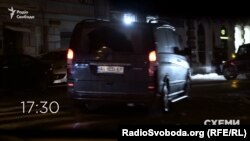 У боковий заїзд Адміністрації президента Порошенка заїжджає той самий кортеж Віктора Медведчука, який «Схеми» зняли напередодні в аеропорту.