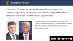 15 листопада на офіційному порталі президента України Петра Порошенка повідомили про його телефонну розмову із новобраним президентом США Дональдом Трампом.
