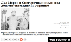 «У Києві вирішили і в цьому році заборонити Діда Мороза і Снігуроньку, влада країни прирівняла обох персонажів до Леніна, заявивши, що вони підпадають під закон про «декомунізацію», – йдеться у новині.