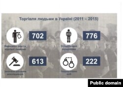У період 2011-2015 років поліція виявила 702 фактів торгівлі людьми, в яких постраждало 776 людей. Це були 236 чоловіків, 540 жінок і 46 неповнолітніх. Втім статус постраждалого і відповідну допомогу від держави отримало набагато менше людей – 121 особа – 115 жінок і 33 дитини. За даними Міжнародної організації з міграції, з Україна досі залишається головним джерелом торгівлі людьми в Європі. З 1990 року понад 96 тисяч українців постраждало від торгівлі людьми, 12 тисяч з них отримало допомогу від Міжнародної організації з міграції.