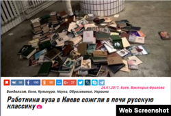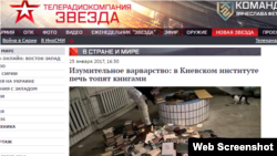 Сайт російського каналу Міноборони «Звезда» вийшов із заголовком: «Дивовижне варварство: в Київському інституті пічку топлять книгами» («Изумительное варварство: в Киевском институте печь топят книгами»).