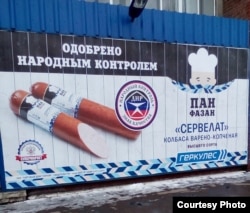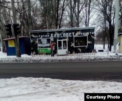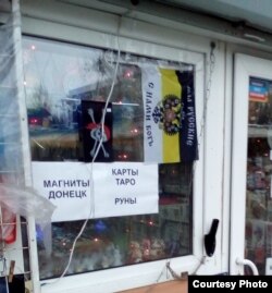– Война на Донбассе очень часто граничит с бизнесом и в рекламной сфере. Из концепции «русского мира» вышел ряд брендов, которые теперь используются как в пропаганде, так и в коммерции. К таковым относится магазин «Блокпост» в одном из центральных районов Донецка, который активно использует военную тематику не только в названии, но и в оформлении помещения: сам магазин окрашен в цвет камуфляжной сетки. Однако ассортимент товаров здесь не имеет ничего общего с войной: это в основном продукты, а также корма для животных.