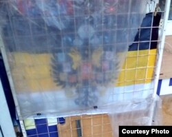 Похожее изображение можно встретить и на флаге «Союза ветеранов Донбасса «Беркут», который располагается возле здания бывшей донецкой обладминистрации.