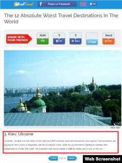 У 2014 році про небезпеку подорожей до Києва писали й інші. Так, ресурс ViraTravel у 2014 році поставив Київ на третю сходинку антирейтингу після селища Оймякон у російській Якутії (Східний Сибір) та Хараре – столицю Зімбабве. І пов’язав це із тими ж заворушеннями у столиці та повідомив про втечу діючого президента України Віктора Януковича.