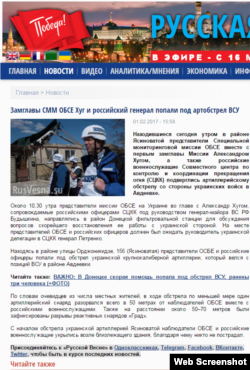 У вівторок 31 січня на сайті російського каналу «Звезда» із посиланням на «Донецкое агентство новостей» повідомляли: «Під обстріл потрапила група спостерігачів російських офіцерів у Спільному центрі з контролю і координації режиму припинення вогню на Донбасі (СЦКК). У повідомленні наголошують, що вогонь по групі офіцерів, які фіксували руйнування в Київському районі Донецька, відкрили українські військові».