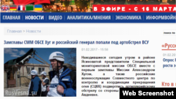 «Сьогодні вранці в районі Ясинуватої представники Спеціальної моніторингової місії ОБСЄ разом з першим заступником голови місії Олександром Гуґом, а також російські військові Спільного центру з контролю і координації режиму припинення вогню на Донбасі зазнали артилерійського обстрілу з боку українських військ в Авдіївці», – йдеться в повідомленні на сайті «Русская весна».