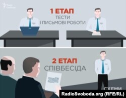 Обиратимуть суддів до нового Верховного суду члени Вищої кваліфікаційної комісії суддів України на чолі з Сергієм Козьяковим. Перший етап конкурсу – тести і письмові роботи. Наступний етап – співбесіда – лише для тих, хто успішно складе перший етап.
